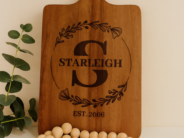At The Starleigh Design Company, creativity meets craftsmanship. We specialize in custom laser-engraved products and unique design services tailored to your ideas and specialized needs, whether that be business or personal. Our laser engraving studio brings imagination to life with handcrafted items such as military plaques, business signage and promotional items, and personalized items like hats, home décor, bookmarks, coasters, keychains, cutting boards, charcuterie boards, journals, and so much more!